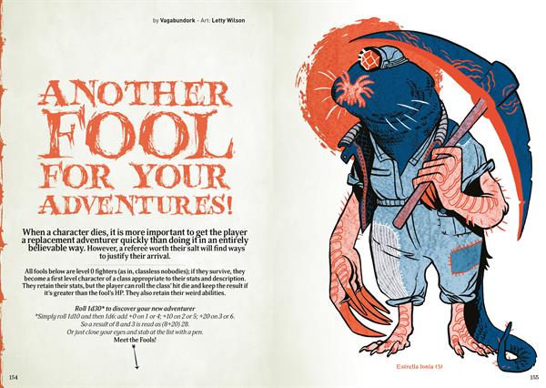 Everything was tightly and stylishly packed into an even thicker tome of OSR goodness that is a pleasure to read by the fire, as well as a useful addition to your refereeing toolkit. It is filled with that old-school-slash-adventure-gaming unique flavour: thoughts about system and substance, useful rules and procedures, random tables and lists, pages of maps, six new classes, nine new monsters, and four complete adventures.